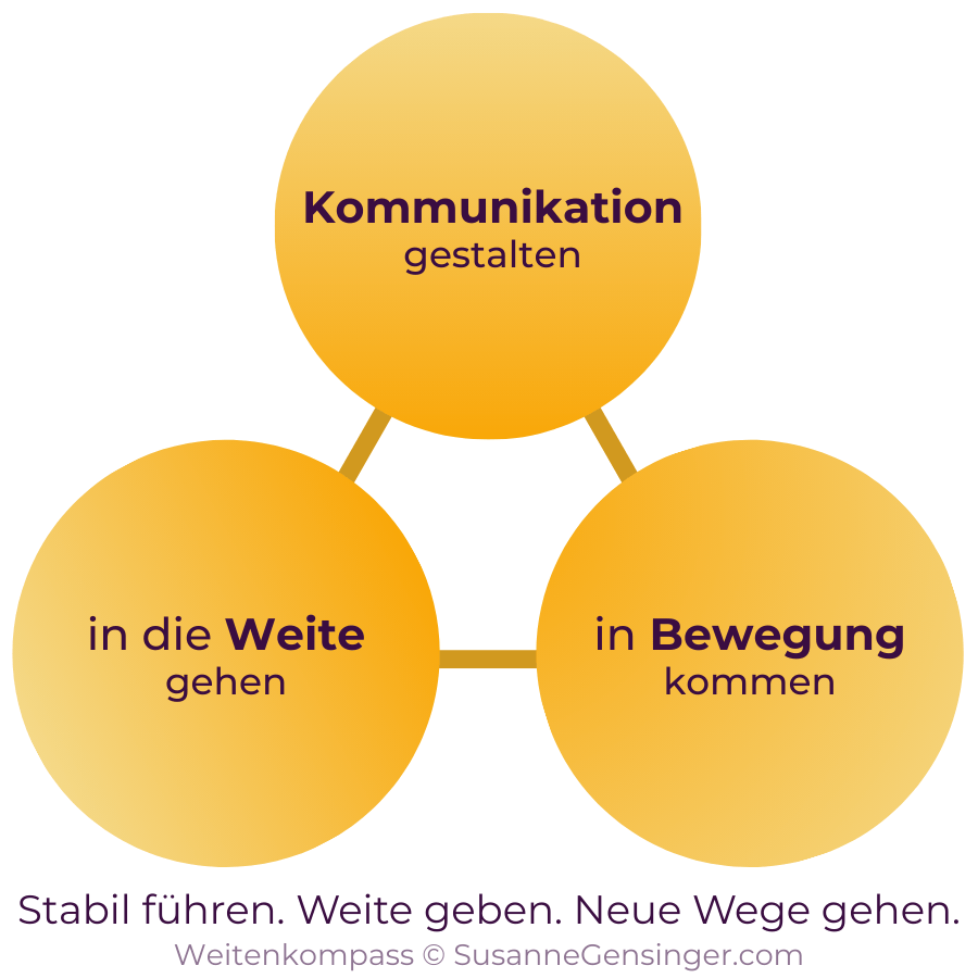 In diesem Gruppentraining vermittle ich Führungskräften genau das. Dabei arbeite ich mit dem von mir entwickelten Weitenkompass. Er verbindet Stabilität und Weite als Grundlage für wirksame Führung.