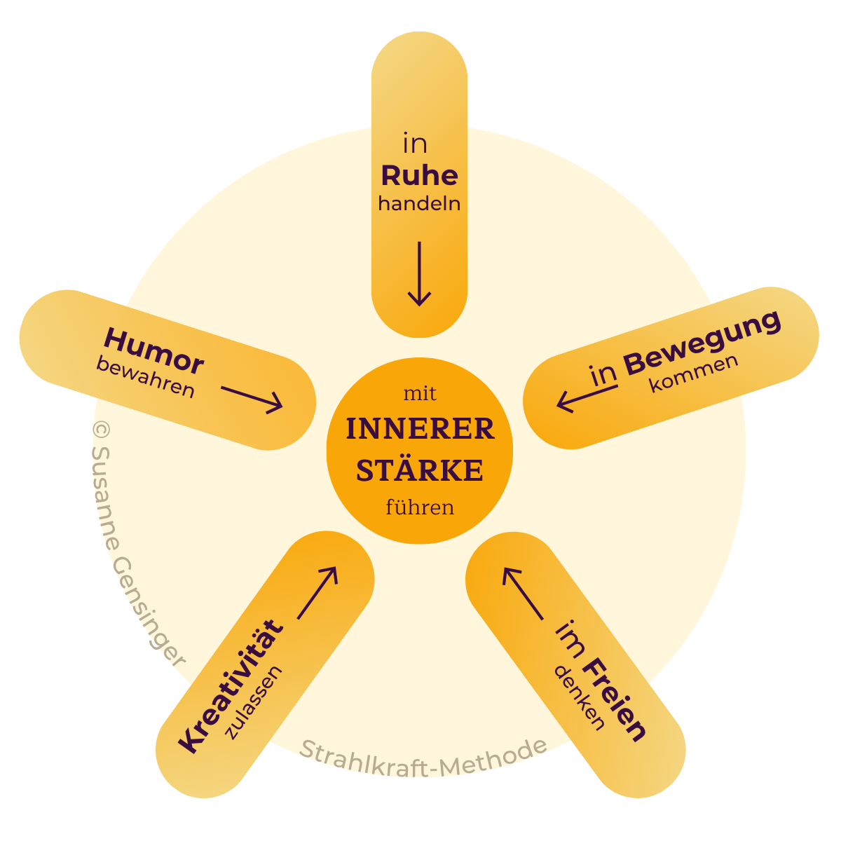 Mit der Strahlkraft-Methode stärken Sie Ihre innere Klarheit und Ruhe mit fünf unterschiedlichen Quellen, die von außen nach innen wirken.